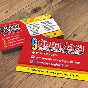Bangun kesan profesional sejak pertemuan pertama dengan kartu nama elegan dari Gunajaya Printing. Tersedia beragam pilihan bahan dan finishing seperti glossy, doff, hingga emboss untuk tampilan premium.
